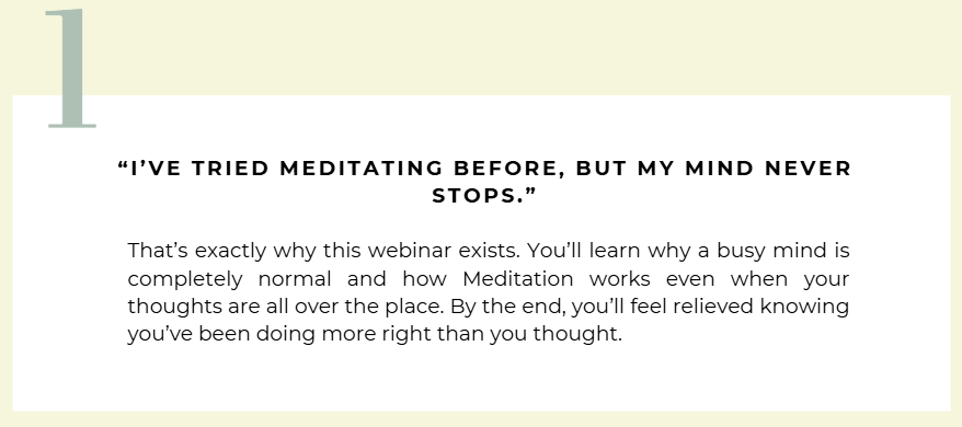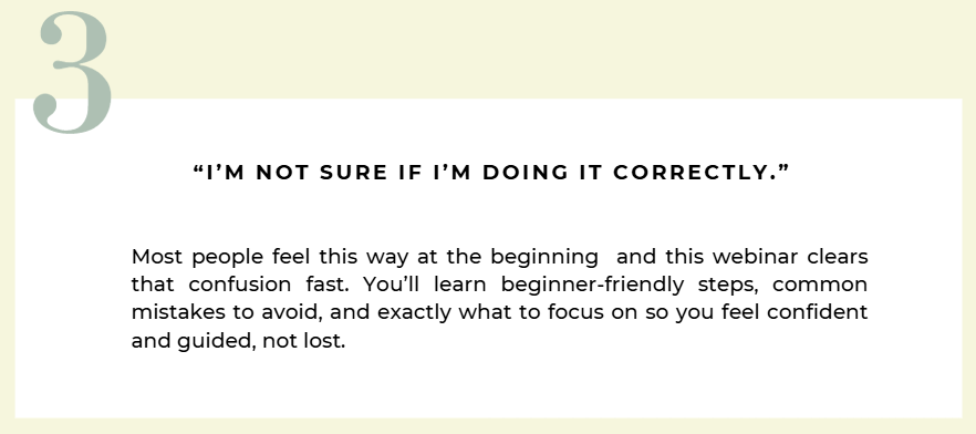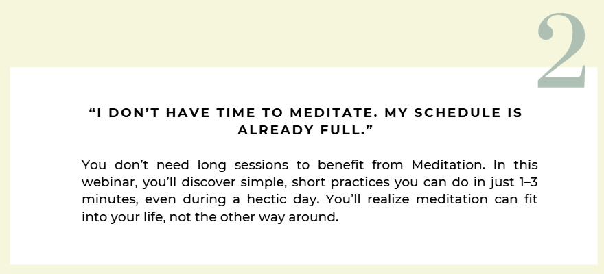 If you want to calm your mind, manage stress better, feel more present, or finally build a meditation practice that feels natural, not forced, this webinar is for you. If you’ve ever wondered “Am I doing this right?” you’ll get the clarity and confidence you’ve been looking for.